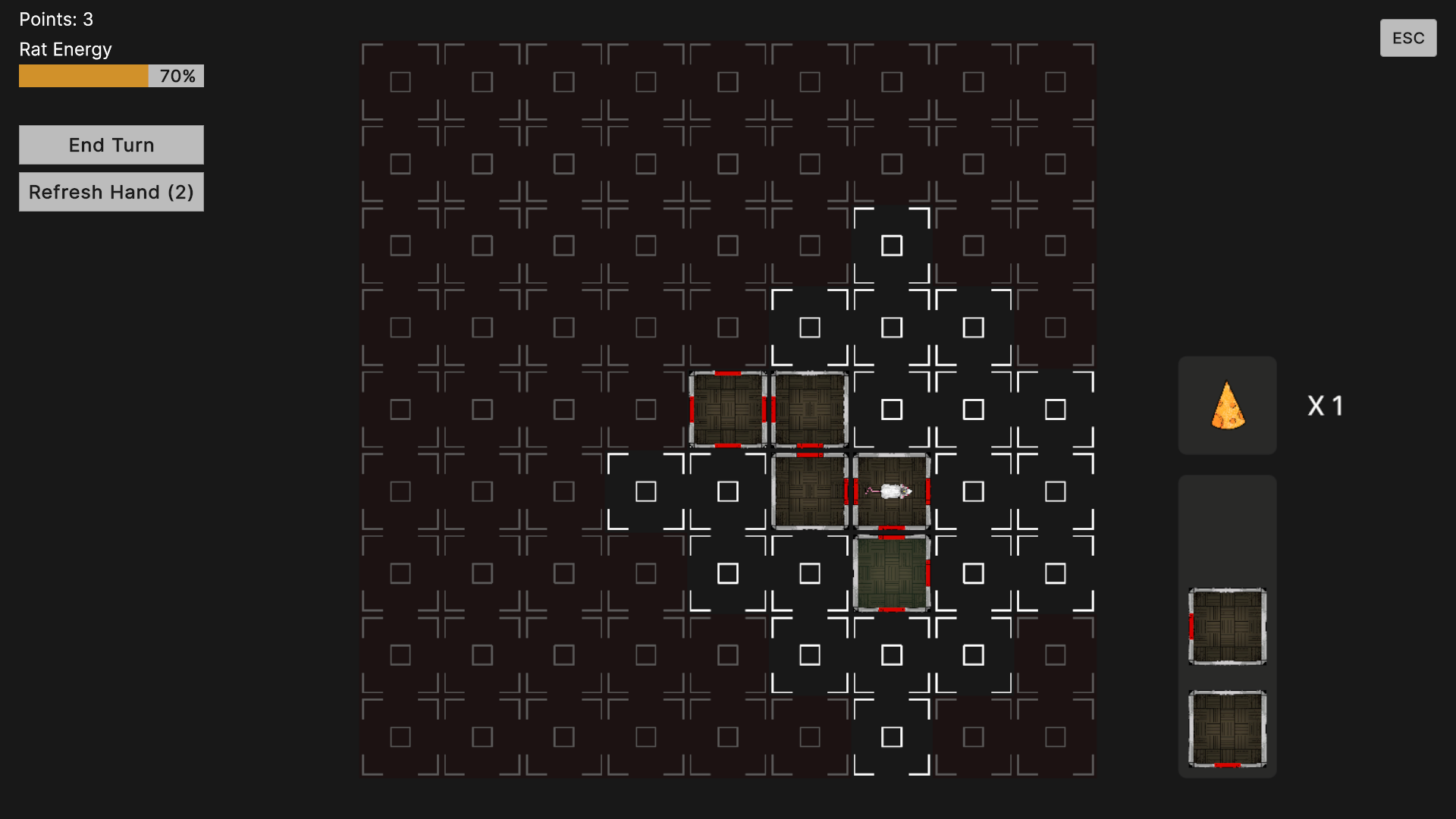 - Click a room on the right bar and drag it onto the map to place it, OR if you have any cheese, you can click the cheese icon on the right and drag it onto a room to place it on the map.